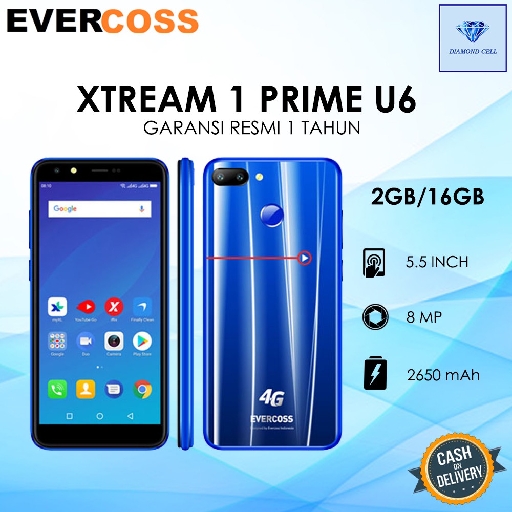 Harga evercoss xtream 1 prime terbaru di indonesia dan spesifikasi evercoss xtream 1 prime merupakan handphone hp dengan kapasitas 2600mah dan layar 5 5 yang dilengkapi dengan kamera belakang 13 2mp dengan tingkat densitas piksel sebesar 286ppi dan tampilan resolusi sebesar 720 x 1440pixels. Rp 1 299 000 30 79 rp 899 000 stok barang sedang kosong berat 1 kg beli barang. U60 xl xtream 1 plus evercoss u6 8gb black rp 949 000 jd id reply 4g kak dan hnya 1 simcard saja kak tp utk yg xtream 1 plus nya 2 simcard kak 1 one a0001.