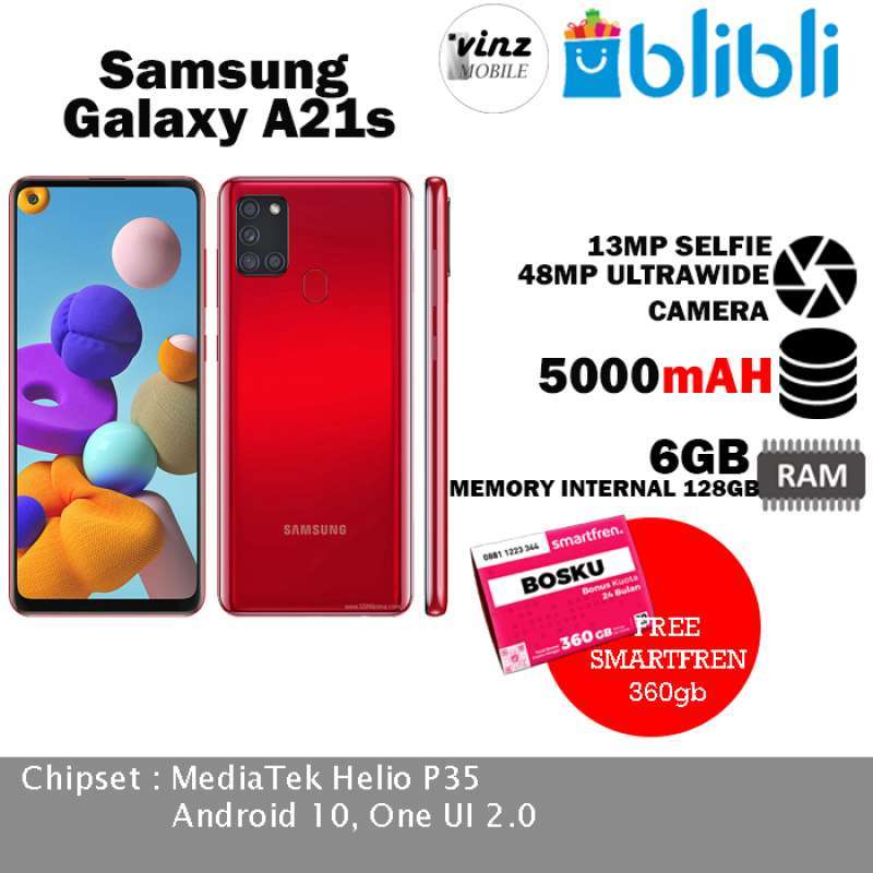 Spesifikasi samsung galaxy a21s samsung galaxy a21s versi baru ini masih menggunakan prosesor exynos 850 dan berjalan pada sistem antarmuka oneui 2 0 yang berbasis pada android 10. Flash sale a21s 6 128gb get it only rp2 999 000 and free gifts.