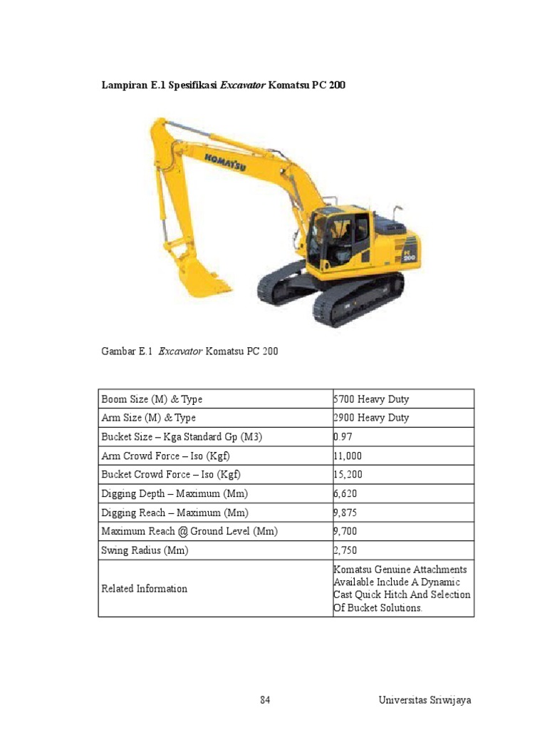 Lampiran F Spesifikasi Excavator Komatsu